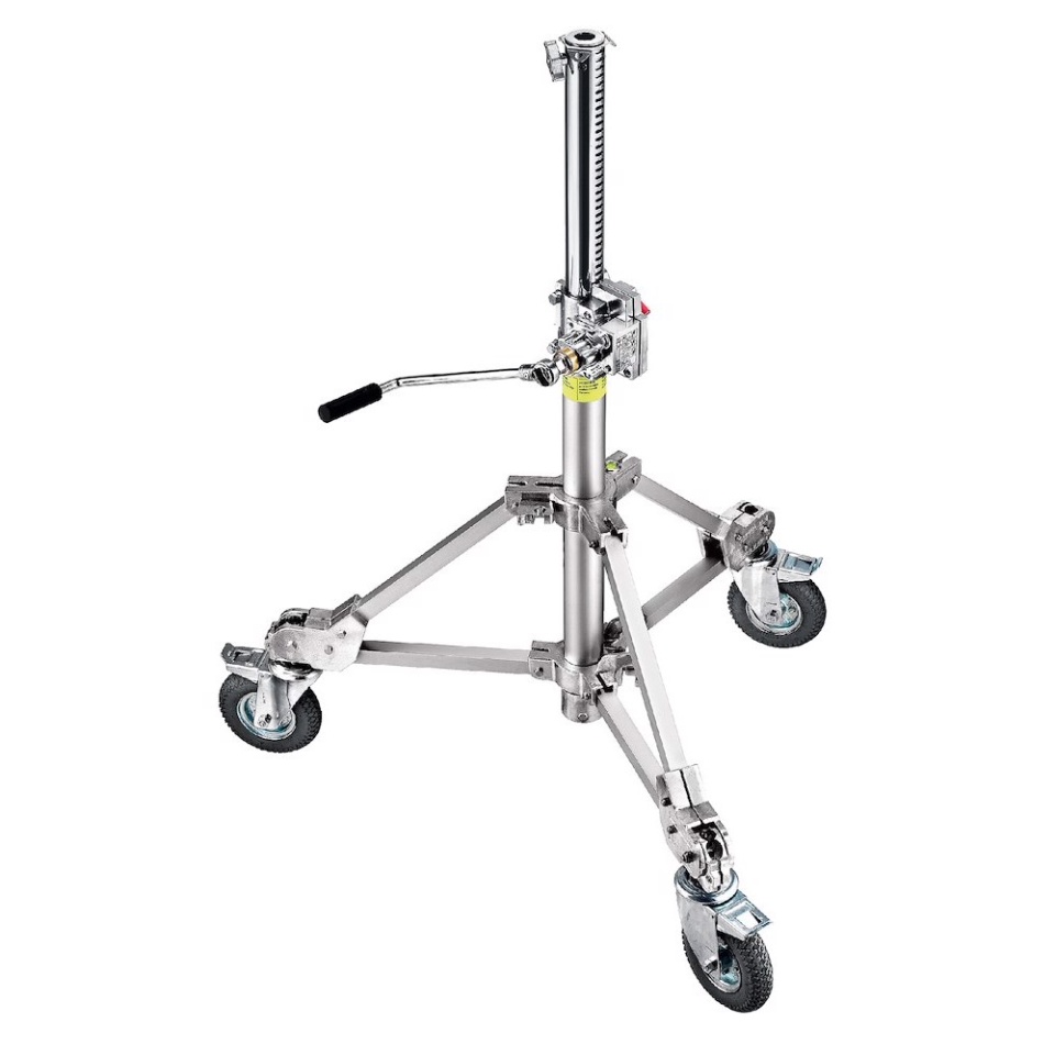 The B7018 Strato Safe Stand is the smallest stand in terms of height in the Avenger Strato Safe Family! The Aluminium legs and chrome steel column are capable of handling loads up to 100 kg/220 lbs at a max height of 175 cm/68.9 inches. Equipped with foam-filled braked multi-directional 80 mm wheels(#474) the B7018 is capable of easily moving the biggest lights into position on different types of terrain. The heavy-duty gearbox uses a removable ratchet handle that easily raises and lowers the most demanding loads. Includes ratchet handle B9005R. When the ratchet handle is not in use you can store it on the side of the top casting which is situated and attached to the lower column. Recommended Accessories: 425B, D650, E200, G300, C626, 087WBK, C590, F100, C461-1, C4461-1 Specifications Weight: 30.7 kg Maximum Height: 175 cm Payload: 100 kg Closed Length: 126 cm Footprint Max Diameter: 120 cm |