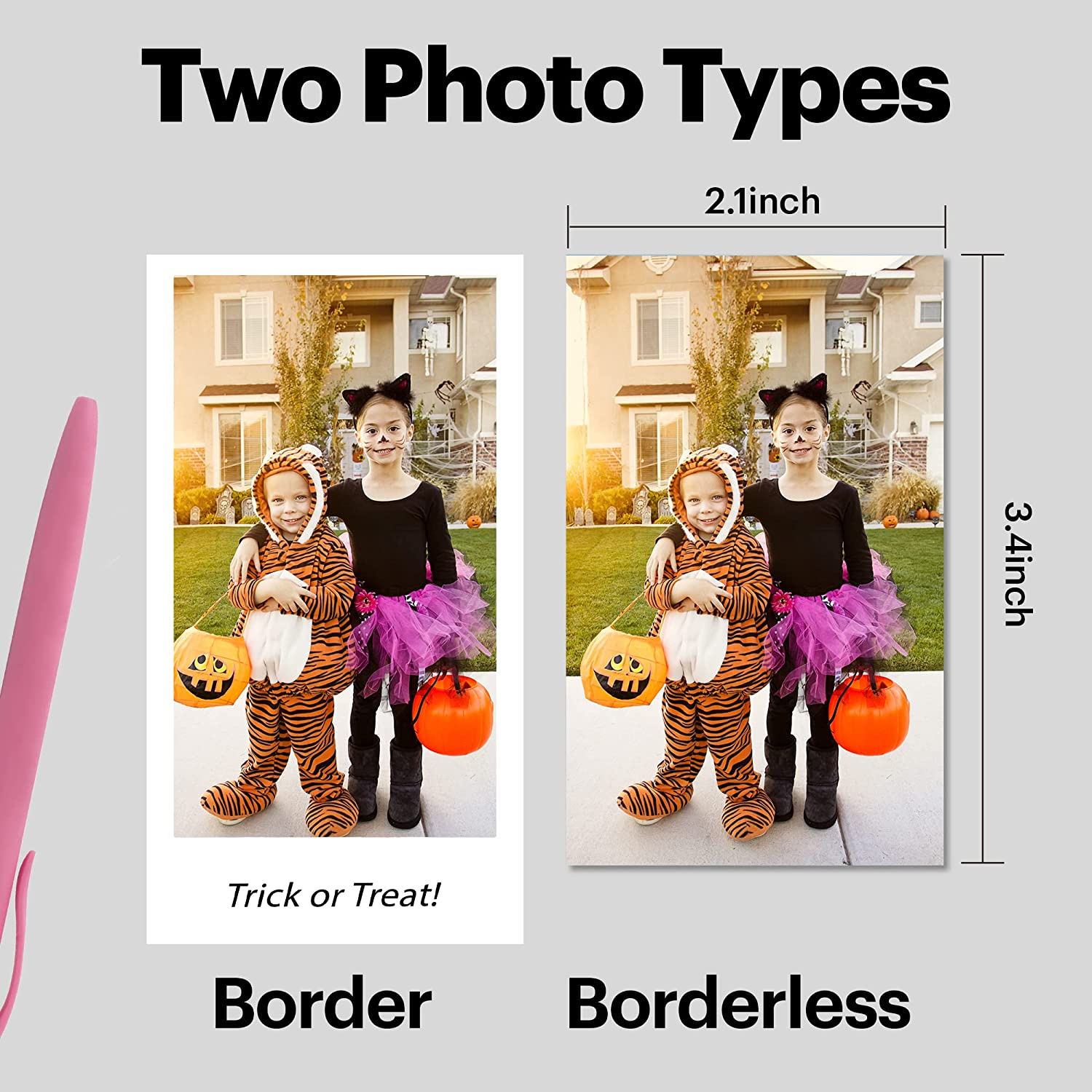 TWO PHOTO TYPES – The KODAK Mini Shot 2 Retro photo printer supports both border and borderless type photos. Write down your memories in the border type so they last forever. Print the borderless type to have larger sized photos.