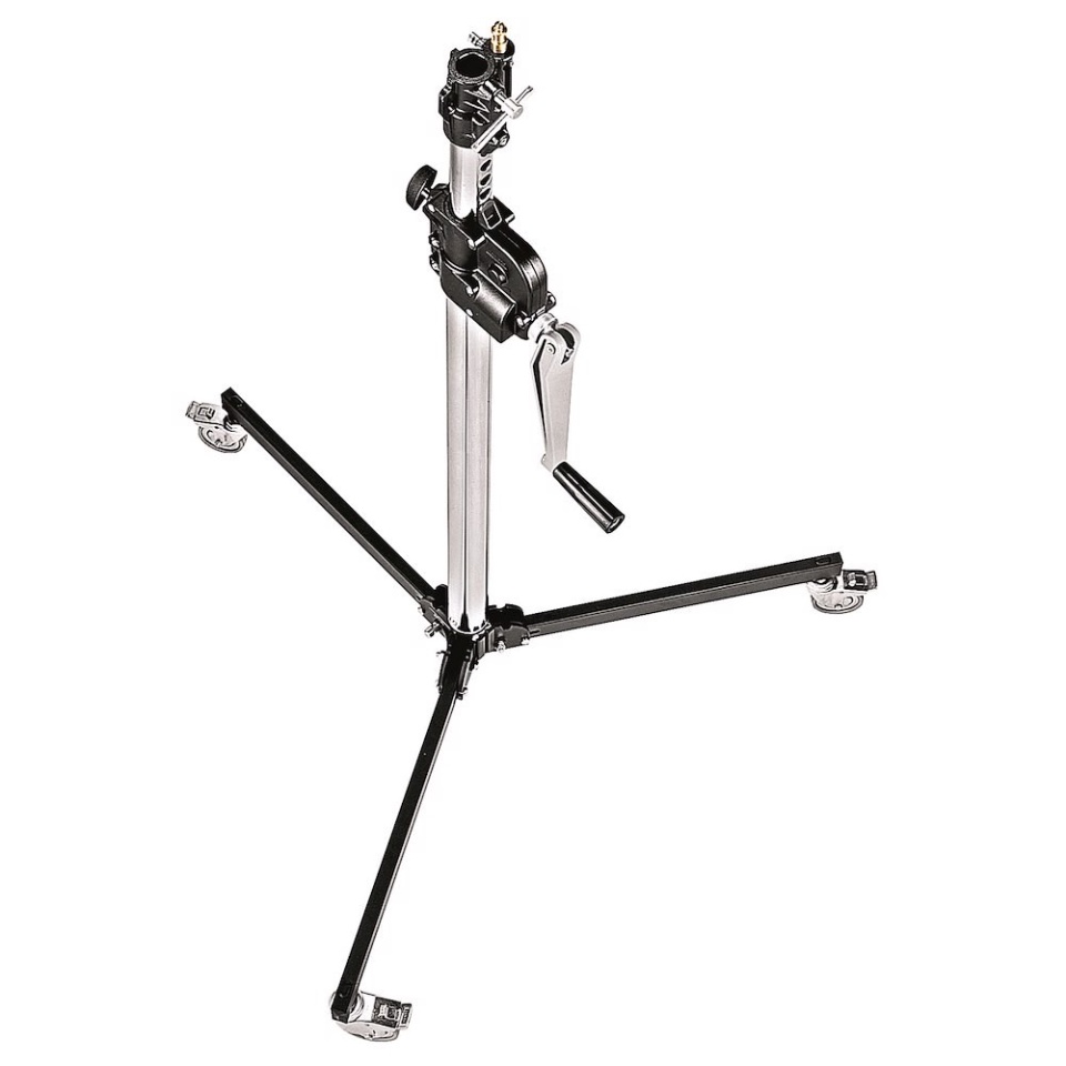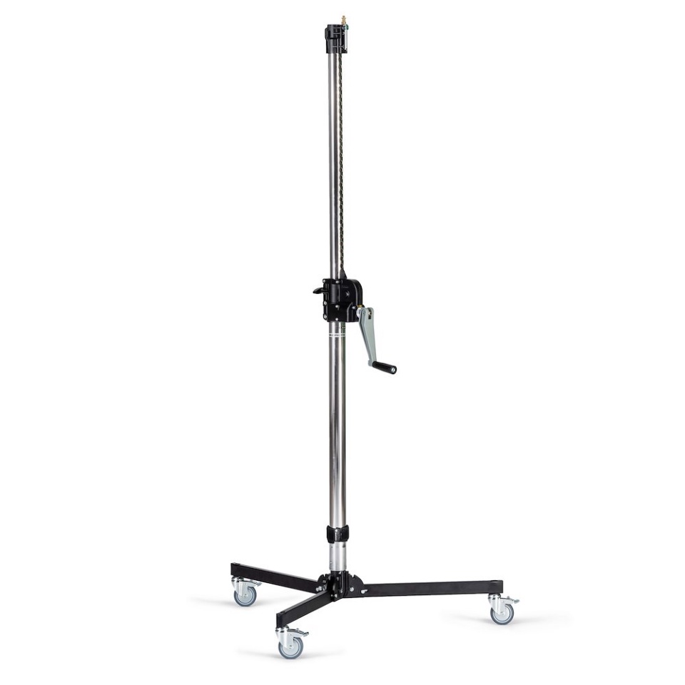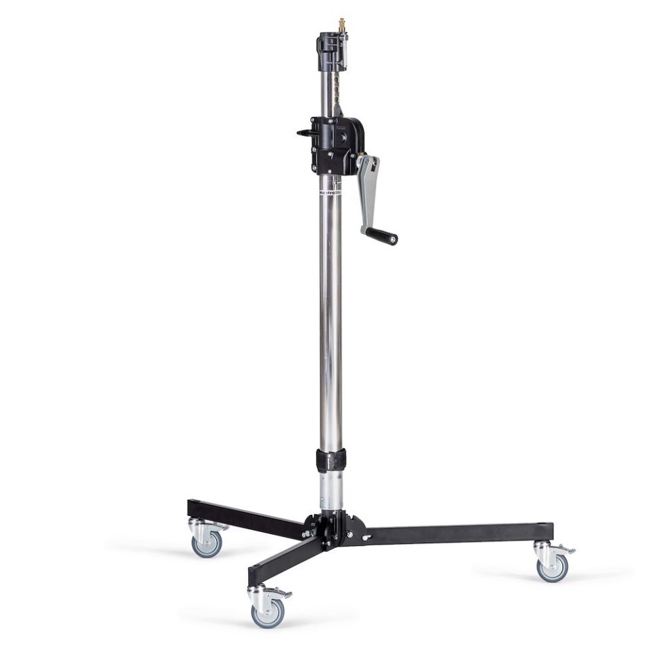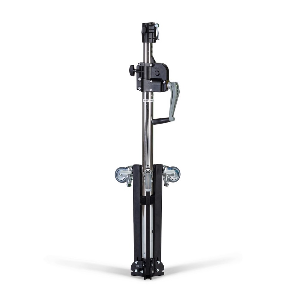 Geared centrepost steel stand. 2 sections, 1 riser. 1 levelling leg. Fitted with braked wheels. Max payload of 35Kg, max height 190cm Specifications Weight: 11 kg Maximum Height: 190 cm Payload: 35 kg Closed Length: 112 cm Footprint Max Diameter: 100 cm Levelling Leg: 1 Risers Stand Number: 1 Section Center Column: 2 |