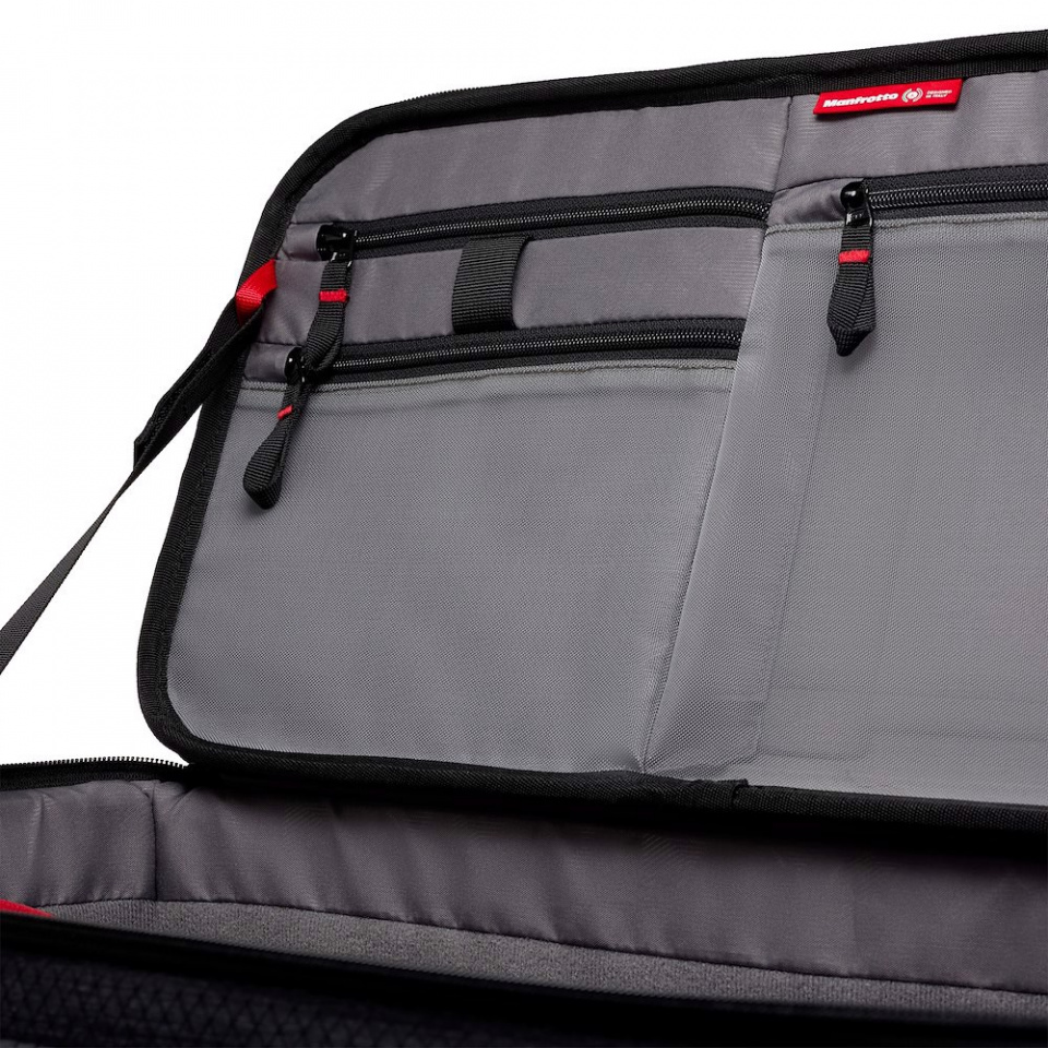 | The most cross-functional in the range for dimensions and space, the Pro Light Cineloader Medium is the ideal choice for video-journalist crews, or one-man band videographers who need to carry a lot of gear to set. Tested for 15kg payload, this bag is designed to perfectly fit a fully rigged camcorder plus accessories. The top lid features a new hybrid approach to protection. Soft & hard materials have been combined to create a new, unique feature: with the EVA thermoformed protective lid, professionals will have peace of mind when transporting their gear no matter what the conditions. Thanks to this hard platform, a video support kit can be fully loaded and fastened to the surface. The lid also offers 3 transparent pockets and a loop to carry a pen or another slim accessory. Thanks to its rectangular shape and dimension the bag offers endless space combinations plus is equipped with four external pockets. The front organiser has space to store multiple accessories, such as cables and notepads. The back pocket is designed to carry documents, whilst the two expandable side pockets create extra space for more equipment. The outer of both the front and the back pockets also have multiple loops for strapping and hanging any useful items. The main camera compartment offers plenty of space, and the option to organise the interior as you wish, by using the 4 M-Guard dividers, of which the main one splits in half for added flexibility. The built-in elastic camera loop also provides extra stability when on the move. The Cineloader Medium offers several transport solutions thanks to the big top handles, reinforced side handles, removable shoulder strap, and trolley loops. It is equipped with an interior AirTag pocket. The Pro Light Cineloader range is made of water-repellent RipStop nylon/polyester fabric, with reinforcement yarn to achieve a balanced lightweight, unique look, and high performance. Strong YKK zippers, hypalon reinforcement, trims and pullers make the bags both ultra-lightweight and strong enough to withstand the most intense usage. Specifications Weight: 3.14 kg Internal Dimensions: 49 x 25 x 21 cm: External Dimensions: 54 x 31 x 28.5 cm Colour: Black Volume: 28 L Tripod Connection: Yes Material: Polyester Types of Gear: Camcorder Type of Bag: Shoulder Bag Water Repellent: Yes |