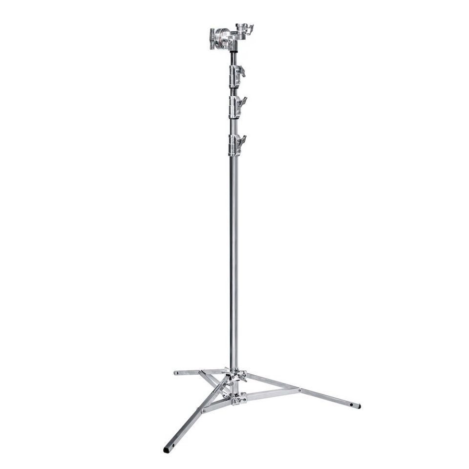 Hromēta tērauda apgaismojuma statīvs ar integrētu divu veida pieslēgumu galvu -1 1/8″ (28mm) ligzda un 4 1/2″ (115mm) Grip galva. Augstā izgatavošanas kvalitāte nodrošina nepārspējamu statīva ilgmūžību. Tas aprīkots ar trīskārši hromētiem T veida bloķēšanas kloķiem drošai regulācijai. Šis statīvs ir piemērots gan apgaismojuma, gan dažādu cita veida video vai foto papildaprīkojuma balstīšanai. Statīva pamatnes balsts piemērots lietošanai ar papildus pasūtāmiem, fiksējamiem ritenīšiem(A9000N). Citi rekomendētie papildus aksesuāri : H2012, H2008, H1200M, 087WBK, H2000M, 087WBK, E200, H9000, H2512, G200-1