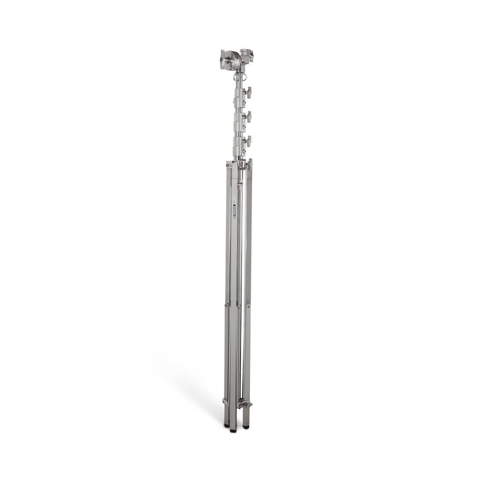 Hromēta tērauda apgaismojuma statīvs ar integrētu divu veida pieslēgumu galvu -1 1/8″ (28mm) ligzda un 4 1/2″ (115mm) Grip galva. Augstā izgatavošanas kvalitāte nodrošina nepārspējamu statīva ilgmūžību. Tas aprīkots ar trīskārši hromētiem T veida bloķēšanas kloķiem drošai regulācijai. Šis statīvs ir piemērots gan apgaismojuma, gan dažādu cita veida video vai foto papildaprīkojuma balstīšanai. Citi rekomendētie papildus aksesuāri : H2012, H2008, H1200M, 087WBK, H2000M, 087WBK, E200, H9000, H2512, G200-1. Papildus ritenīši netiek rekomendēti