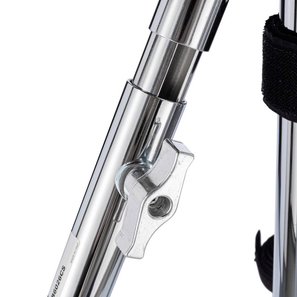 • Maksimālais augstums: 261 cm • Minimālais augstums: 153 cm • Maksimālā kravnesība: 45 kg • Kravnesība pie max.augstuma: 45 kg • Garums saliktā veidā: 173 cm • 2 sekcijas, 1 regulējama • 1 Līmeņošanas kāja • Kāju pamatnes max.diametrs: 152 cm • Svars: 19 kg • Materiāls: tērauds • Krāsa: sudraba • Cauruļu diametrs: 55/45 mm. Kājas Ø: 30 x 30 mm • Pieslēgvietas, augšas: 1 1/8″ (28mm) ligzda, 5/8″ (16 mm) iebīdāma Spigot pāreja bez vītnes