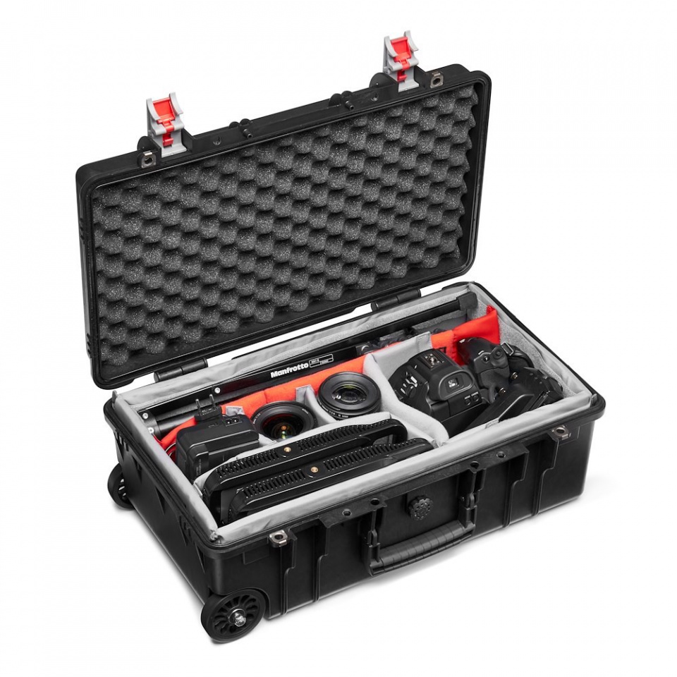 | Pro Light Reloader Tough H-55 soma,paredzēta profesionāliem ceļojošiem fotogrāfiem un videogrāfiem. Šī soma ir ražota Itālijā oriģinālā Manfrotto stilā, izmantojot militāros standartos balstītas tehnoloģijas un izturīgus, vieglus materiālus. Tā ir izgatavota un veidota ceļotājiem, kuri nevēlas meklēt kompromisu starp drošību un mobilitāti. Šī soma atbilst starptautiskajiem rokas bagāžas izmēriem* un ir aprīkota ar divu posmu izvelkamu rokturi. Pro Light Reloader Tough H-55 ir veidota ar modelējamu foto organizācijas bloku, kuru var pielāgot, izmantojot Manfrotto CPS regulējamos sadalītājus. Soma var ietilpināt profesionālo DSLR kameru ar pievienotu 400/f2.8 objektīvu un otru kameras korpusu ar 3-4 papildus objektīviem atkarībā no izmēriem.Soma nodrošina IP67 līmeņa aizsardzibu: netiek pieļauta putekļu iekļūšana, kā arī ūdens iekļūšana pie īslaicīgas iegremdēšana ūdenī līdz 30 minūtēm. *Pirms lidojuma vienmēr pārbaudiet ar savu aviokompāniju tās pašreizējās rokas bagāžas prasības. Ņemiet vērā, ka pārslogojot somu, tā var paplašināties. |